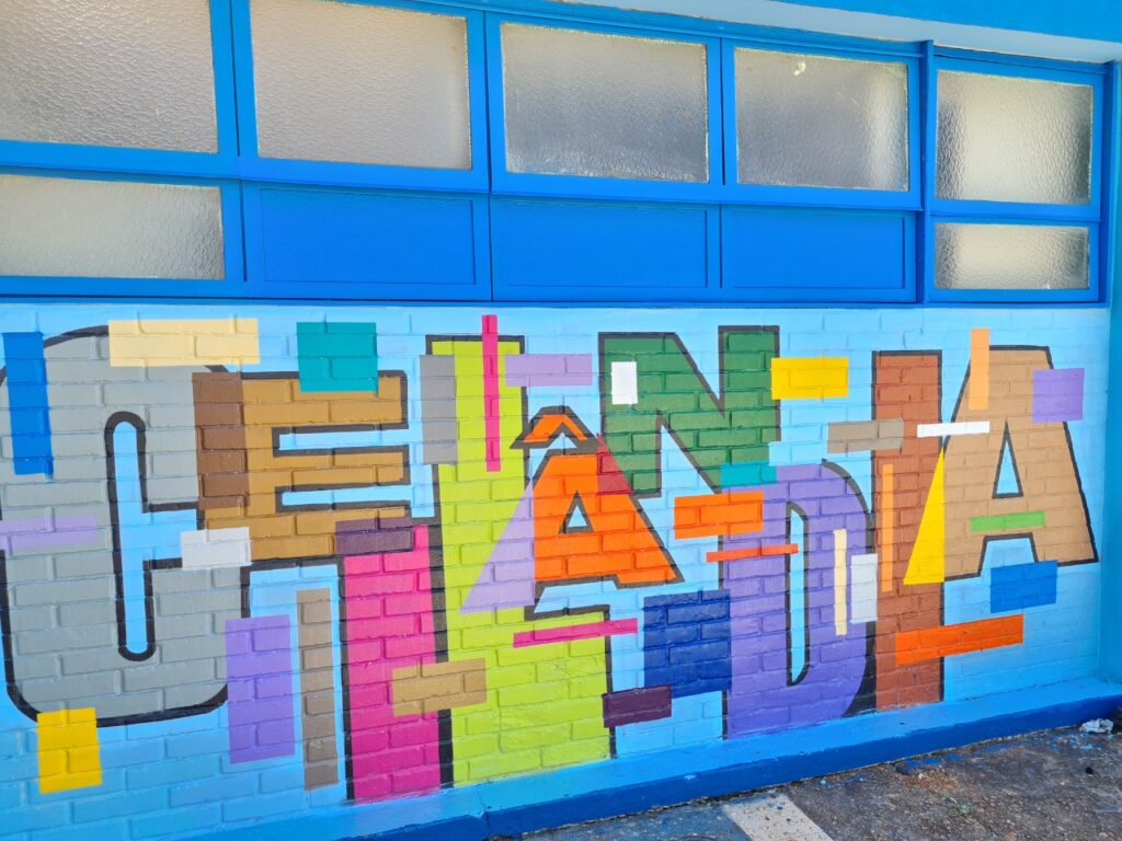 Os grafiteiros de Ceilândia Elom Cordeiro e Rivas Alves se uniram para homenagear a cidade com a pintura de um painel de cores vibrante no muro externo da administração da cidade.